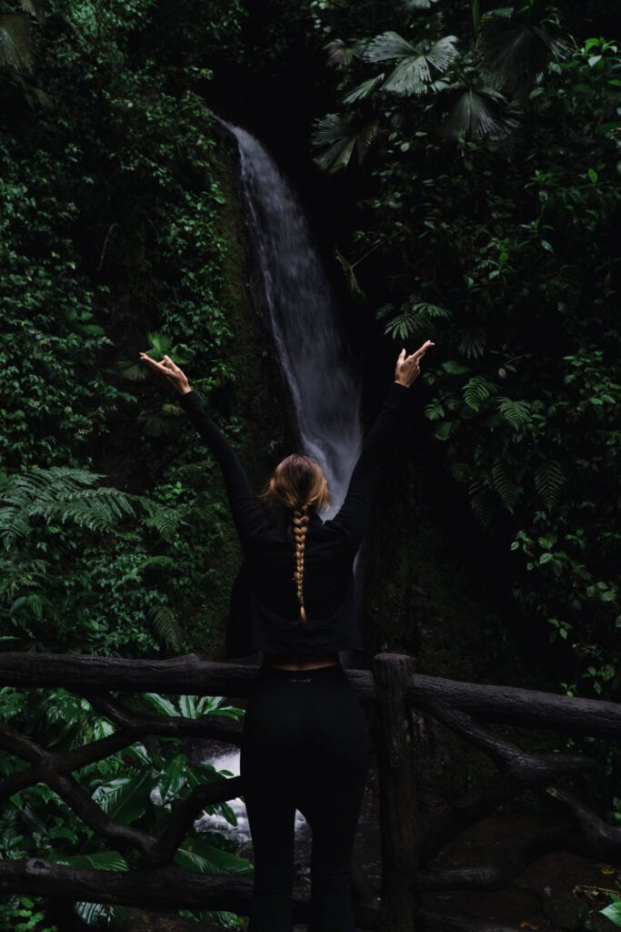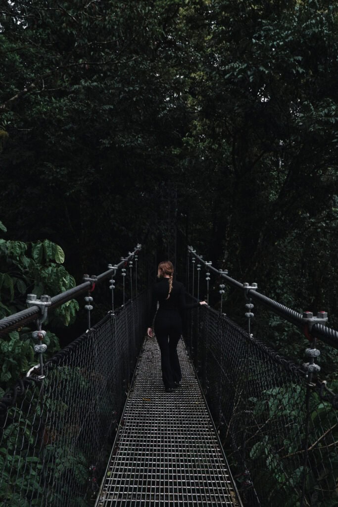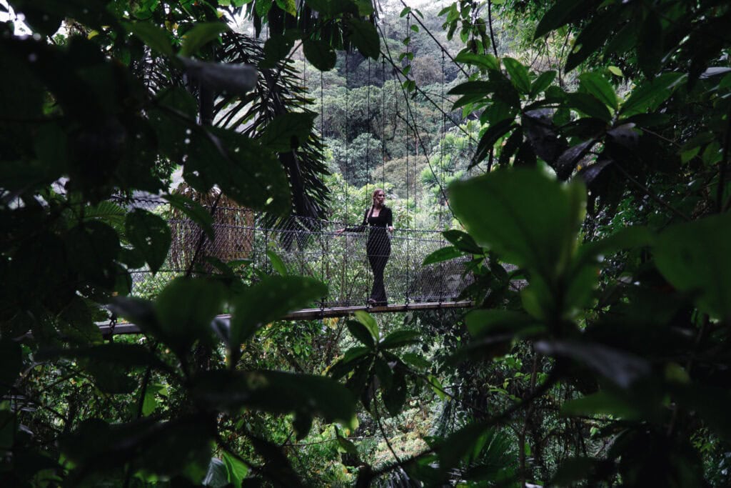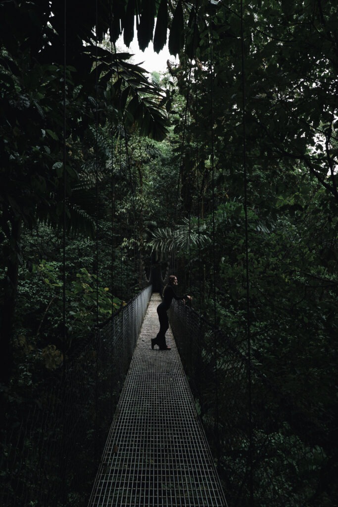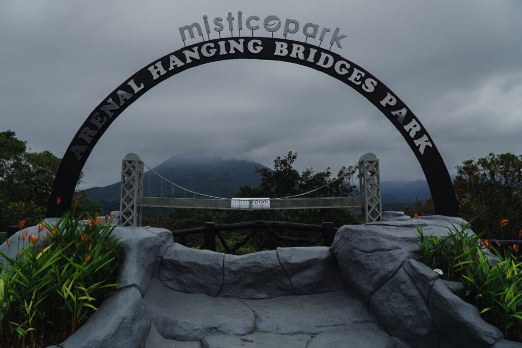 Mistico Park Costa Rica — also known as Mistico Arenal Hanging Bridges Park — is one of our absolute favorite things to do in La Fortuna, Costa Rica. There’s something truly magical about walking through the rainforest layer by layer — starting from the treetops and making your way down past hanging bridges, howler monkeys, thick vines, and finally a waterfall deep in the jungle.